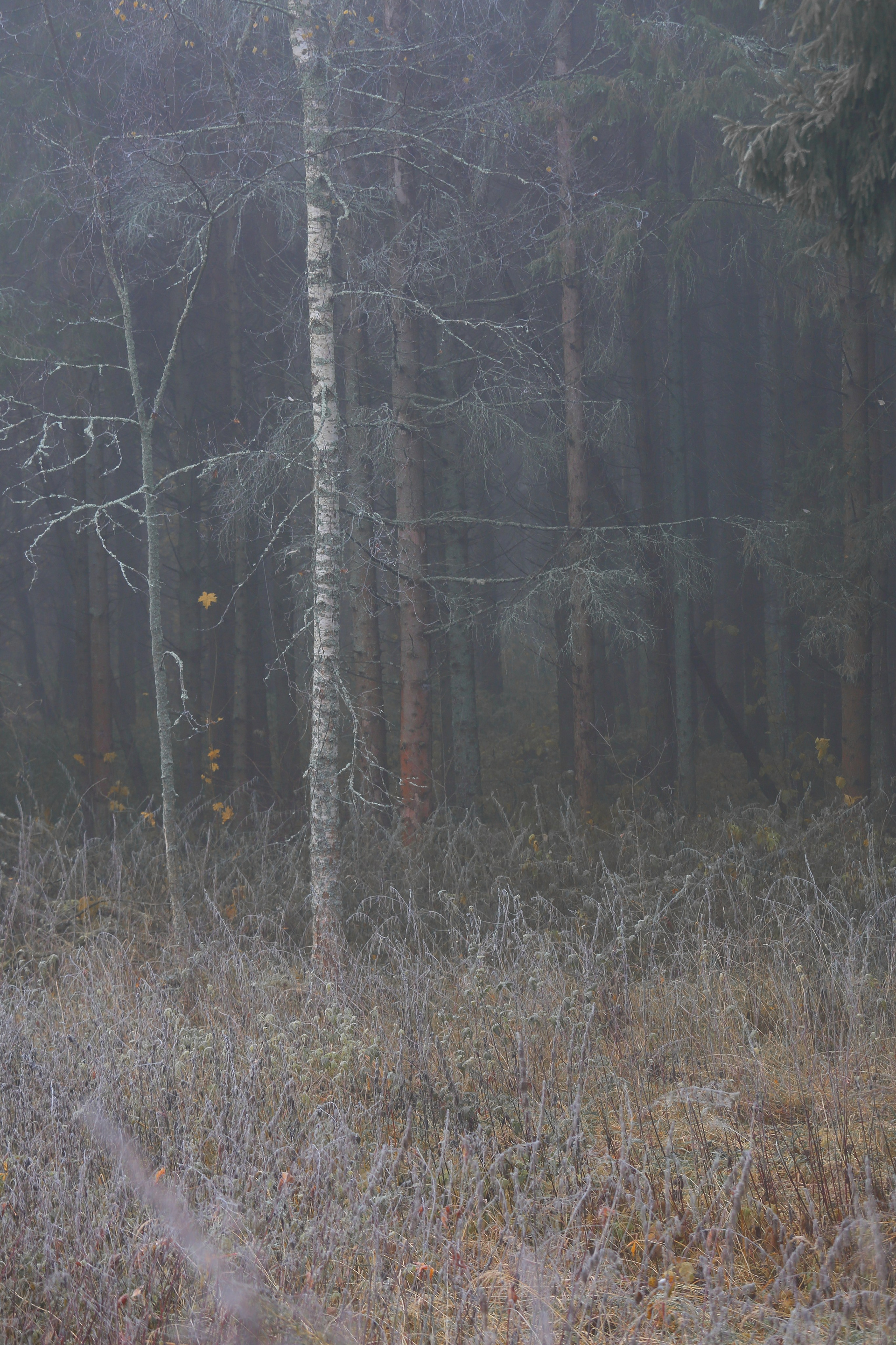 Ветви застыли в этом утреннем морозном тумане на небольшой возвышенностью над рекой. Березы сбросили почти все листья, но именно за эти малые шапочки и брызги листвы и ценны сейчас. Важное значение приобретают именно твои мысли, которые отпечатываются на полотне жизни, определяя те события которые произойдут с тобой. Время здесь течёт медленно, позволяя тебе остановиться, прислушаться как иногда с веток падает иней, а за поворотом ждет волшебная неизвестность